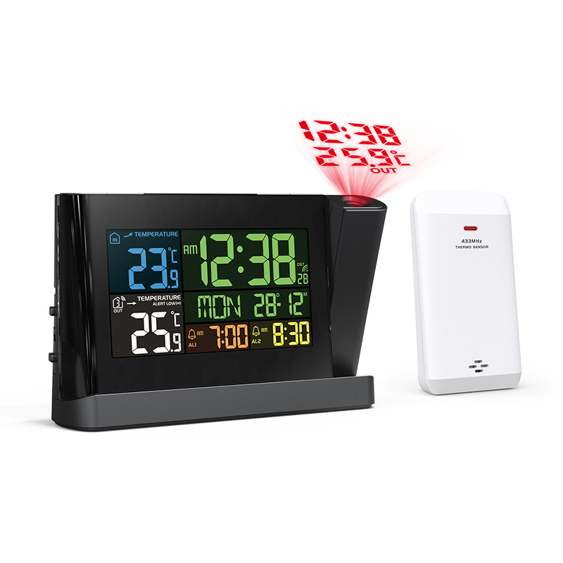 The projection feature allows you to display time and weather on a wall or ceiling for easy viewing during the night.